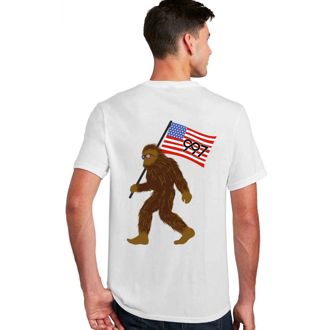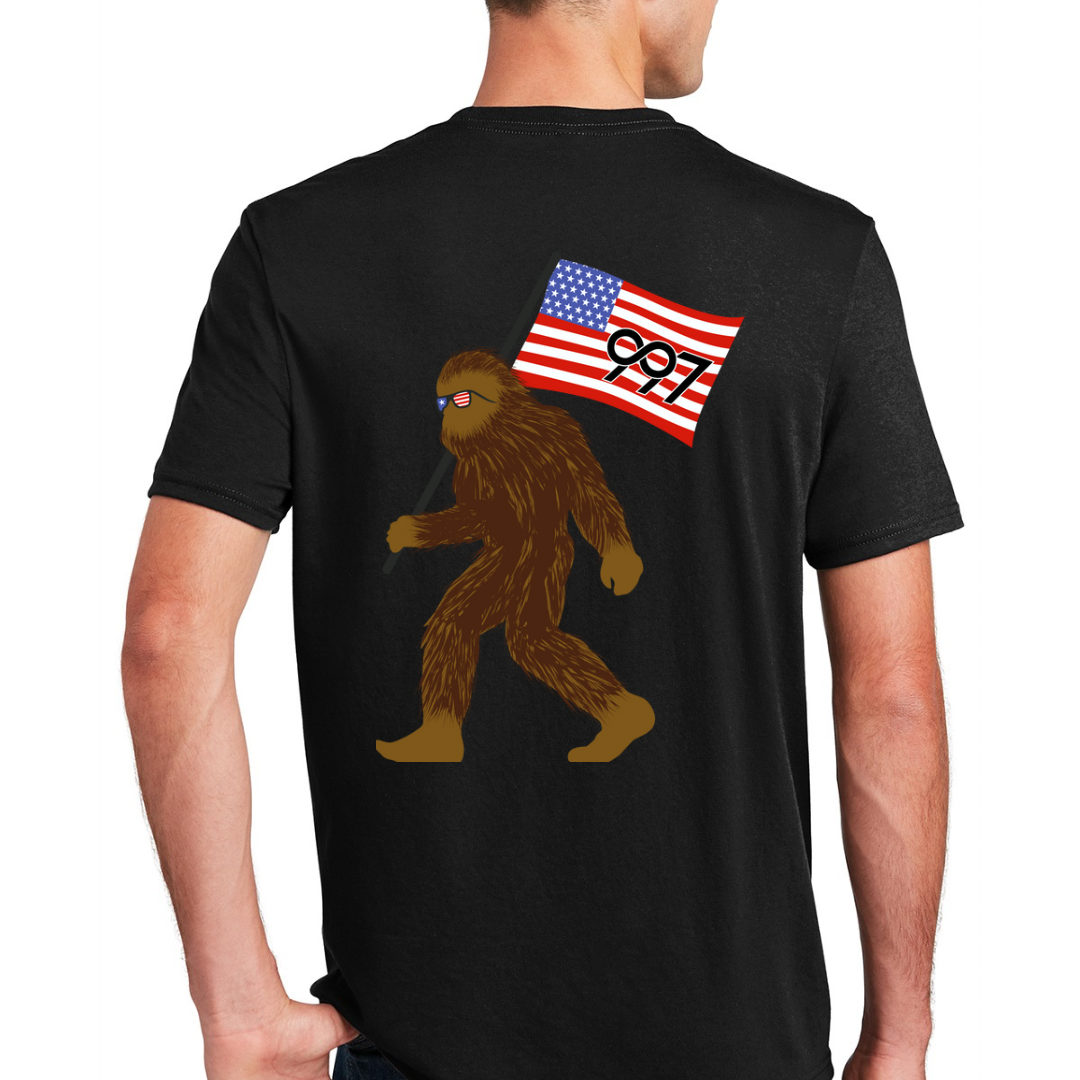 Celebrate the 4th of July in style with our limited edition 997 Patriotic Sasquatch shirt. Made with high-quality materials and featuring a unique design, this shirt is perfect for any patriotic enthusiasts. Available now in limited quantities.